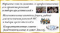• Я (мы) нижеподписавшийся, (имя, отчество, фамилия, адрес), принимаю всенародную цель развития способностей человека и изъявляю волю, о немедленной передаче управления народным советам нашего города (района). Со структурой новой формы управления ознакомлен.